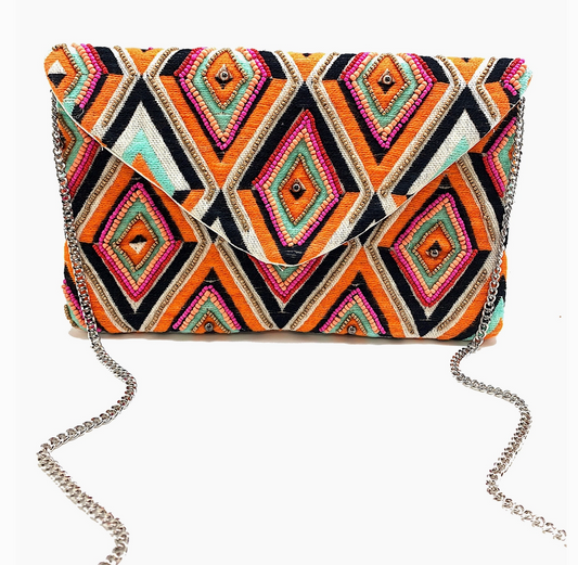This collection of clutch bags is an eco-conscious brand designed in the United States and hand crafted in India. The styles are produced in limited numbers and handwoven on looms using 100 percent cotton, jute and jacquard fabrics. Materials and production process include exclusive beading and embroidery to offer the most exquisite, hand crafted pieces.