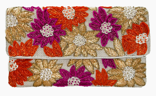 Blooming Flowers Beaded Clutch