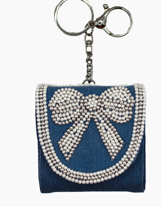 Denim Bow Beaded AirPod Holder Key Ring