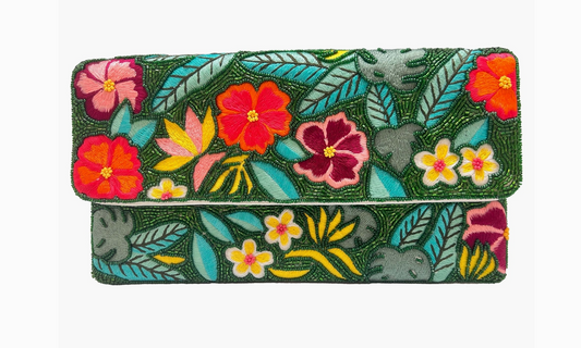 Tropical Floral Green Beaded Clutch