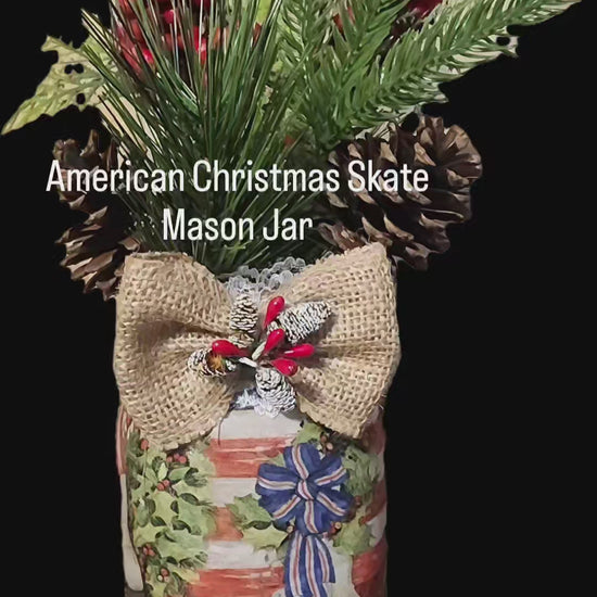 Deck the halls with this charming mason jar featuring a festive American Christmas Skate design! Each piece arrives dressed up with a generous jute bow, complete with natural pine cones and berry accents. The included greenery and berries bring instant holiday cheer to any shelf, mantel, or table—no extra decorating required. Perfect for spreading seasonal joy throughout your home.