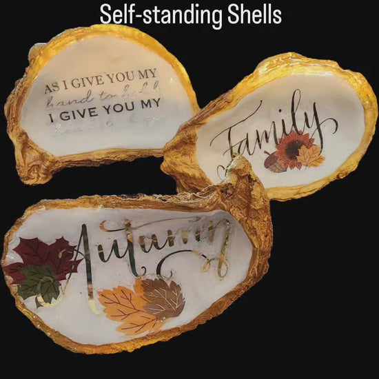 These cute oyster shell ornaments stand up on their own and make your holiday meals even more festive. Bring a splash of unique, handcrafted magic to your holiday table with these special natural shell decorations or give as cute little gifts to show someone you are thinking of them.