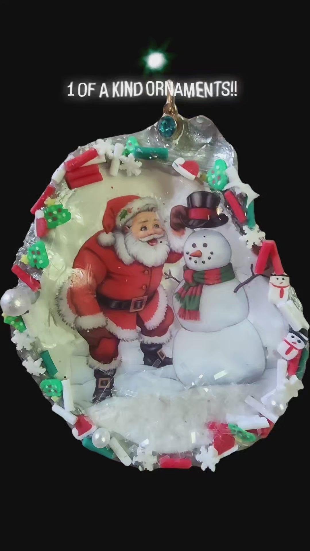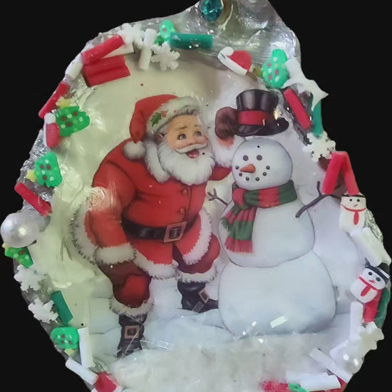 Santa and Snowman Oyster Shell Ornament - SOLD